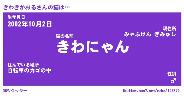 | 生年月日? …「くろねこ」 | 8月01日 10:16 |