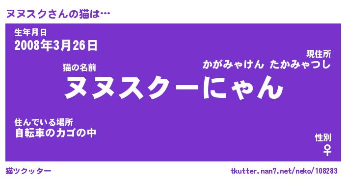 | ポケモン風あだ名 | 『ヌヌチュウ』『ヌヌスダネ』 |