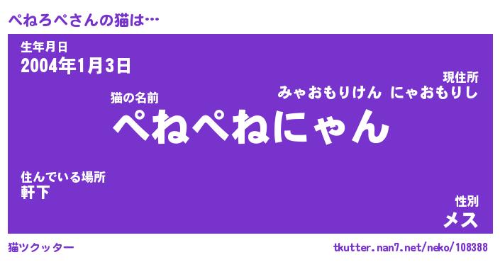 | 意味不明あだ名 | 『ペロリンぺねろぺ』『永久保存ぺねろぺ』 |