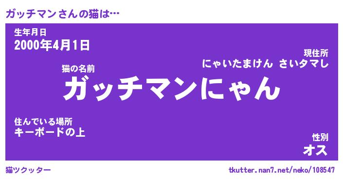 | ファンタジー風あだ名 | 『ガッフェル』『エターナルガッチマンー』 |