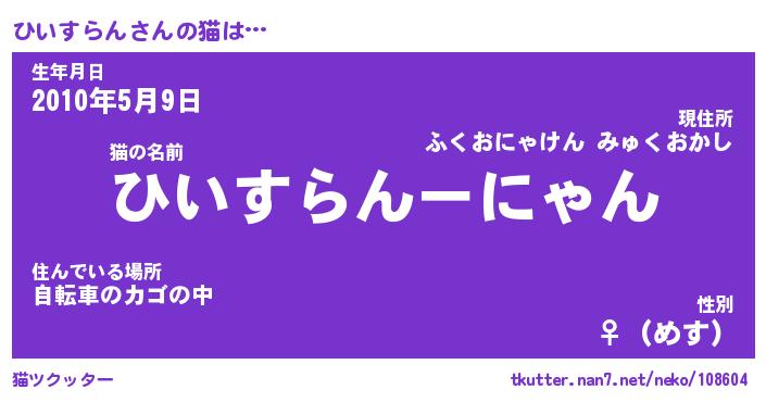 | 生年月日? …「くろねこ」 | 8月01日 10:16 |