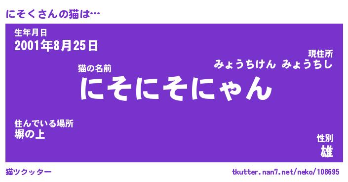| ファンタジー風あだ名 | 『ニソフェル』『エターナルニソクー』 |