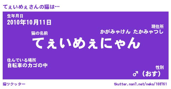 | ヘコむあだ名 | 『てぇにー』『つくし』『てぇぷりん』 |