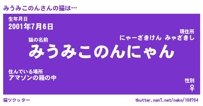 | ポケモン風あだ名 | 『ミウチュウ』『ミウミダネ』 |