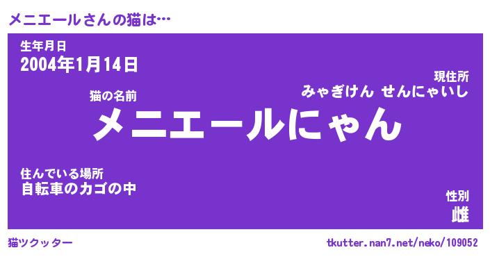 | ポケモン風あだ名 | 『メニチュウ』『メニエダネ』 |
