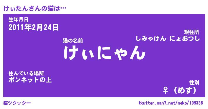 | 意味不明あだ名 | 『ペロリンけぃたん』『永久保存けぃたん』 |