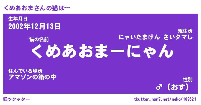 | ファンタジー風あだ名 | 『クメフェル』『エターナルクメアオマー』 |