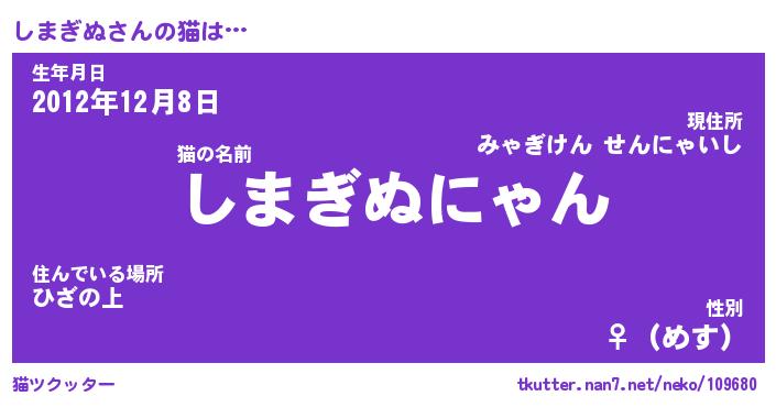 | ファンタジー風あだ名 | 『シマフェル』『エターナルシマギヌー』 |