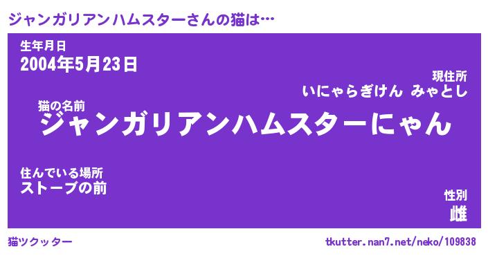| 欧米人風あだ名 | 『マイケルジャンガリアンハムスター』 |