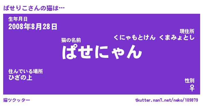 | 意味不明あだ名 | 『ペロリンぱせりこ』『永久保存ぱせりこ』 |