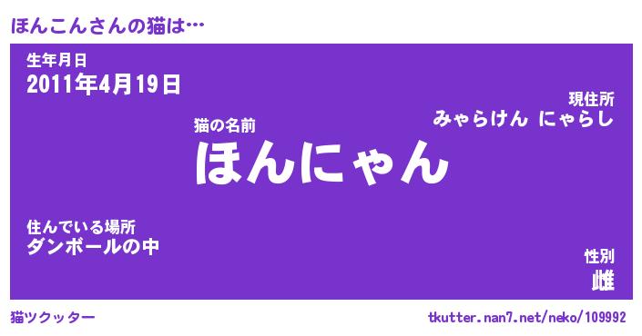 | ポケモン風あだ名 | 『ホンチュウ』『ホンコダネ』 |