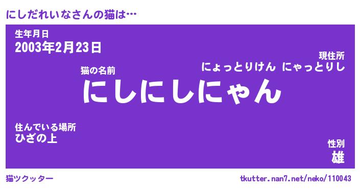 | ポケモン風あだ名 | 『ニシチュウ』『ニシダダネ』 |