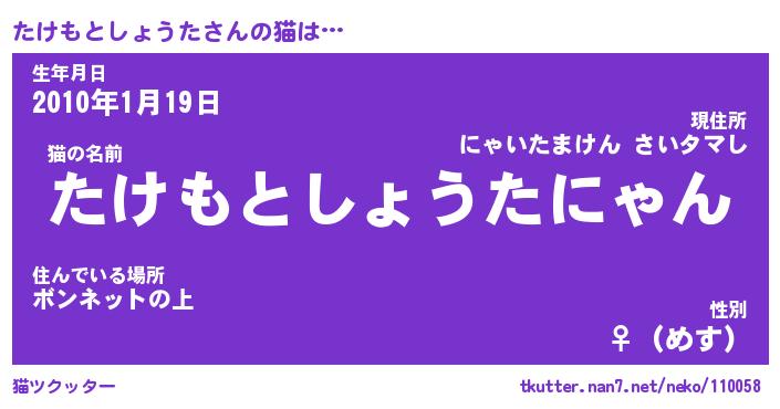 | ポケモン風あだ名 | 『タケチュウ』『タケモダネ』 |