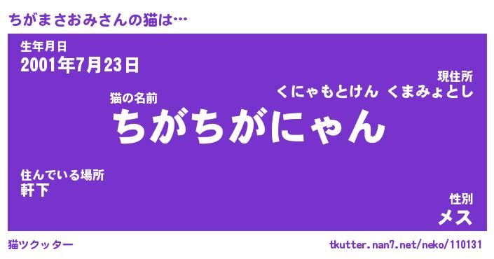 | ポケモン風あだ名 | 『チガチュウ』『チガマダネ』 |
