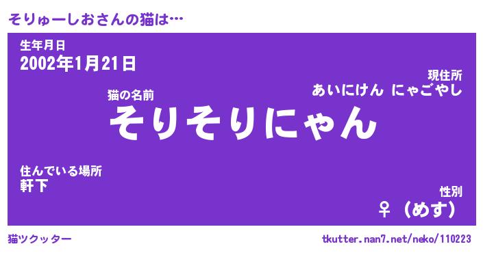 | 生年月日? …「くろねこ」 | 8月01日 10:16 |