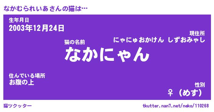 | ヘコむあだ名 | 『なかにゅー』『牛乳』『なかを』 |