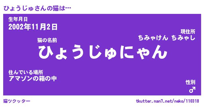 | 欧米人風あだ名 | 『マイケルひょうじゅ』 |