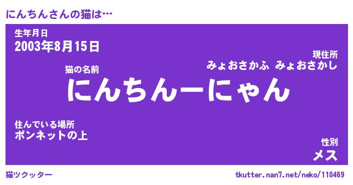 | ポケモン風あだ名 | 『ニンチュウ』『ニンチダネ』 |