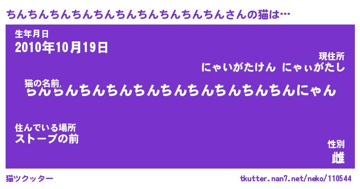 | 男性向けラノベタイトル風あだ名 | 『ちんちんちんちんちんちんちんちんちんちんの憂鬱』 |