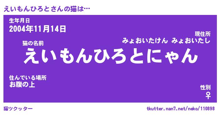 | 男性向けラノベタイトル風あだ名 | 『えいもんひろとの憂鬱』 |