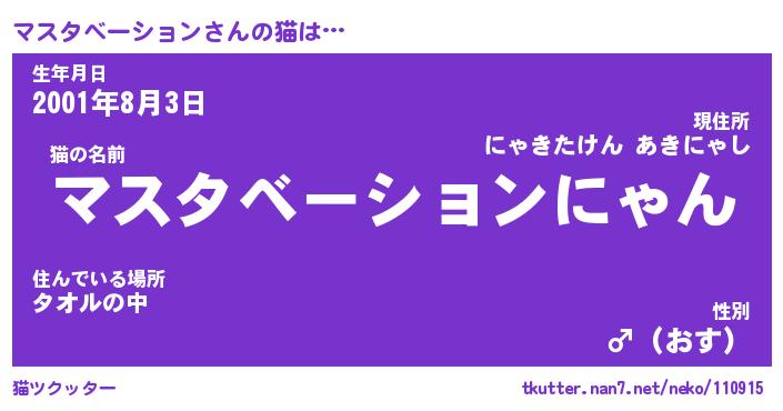 | 男性向けラノベタイトル風あだ名 | 『マスタベーションの憂鬱』 |