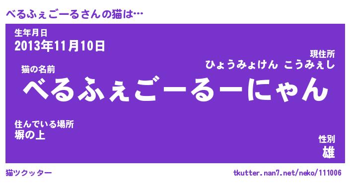 | 2回繰り返すあだ名 | 『べるべる』『べべるる』『ぬるぬる』 |
