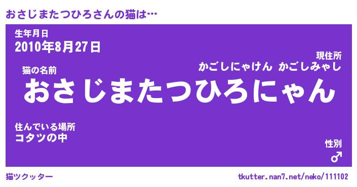 | 男性向けラノベタイトル風あだ名 | 『おさじまたつひろの憂鬱』 |