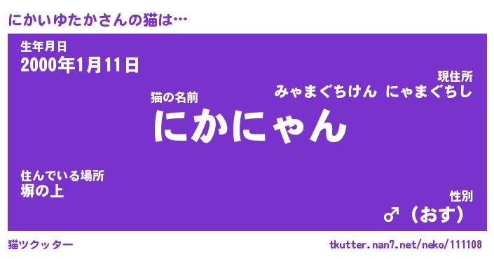 | ポケモン風あだ名 | 『ニカチュウ』『ニカイダネ』 |