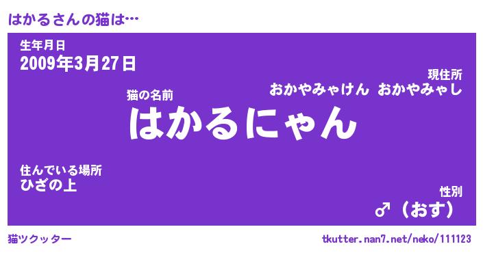 | 生年月日? …「くろねこ」 | 8月01日 10:16 |