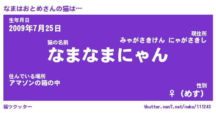 | 2回繰り返すあだ名 | 『なまなま』『ななまま』『うずうず』 |