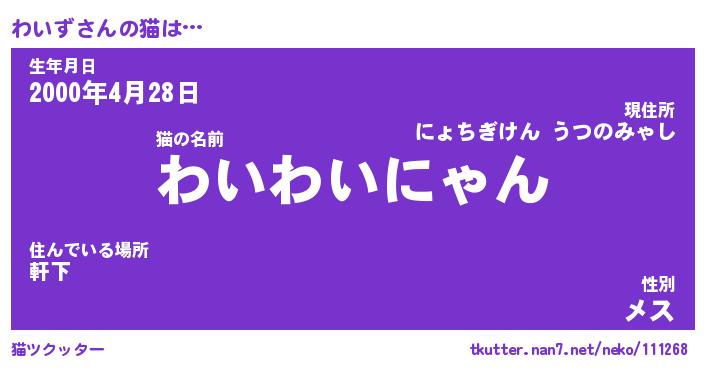 | 2回繰り返すあだ名 | 『わいわい』『わわいい』『ぬらぬら』 |