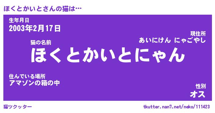 | 生年月日? …「くろねこ」 | 8月01日 10:16 |