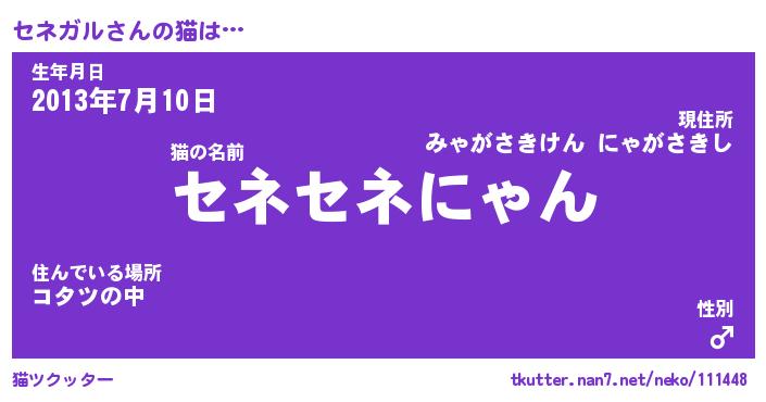 | ファンタジー風あだ名 | 『セネフェル』『エターナルセネガルー』 |