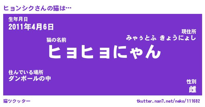 | 2回繰り返すあだ名 | 『ヒョヒョ』『ヒヒョョ』『ぷるぷる』 |