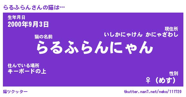 | 生年月日? …「くろねこ」 | 8月01日 10:16 |