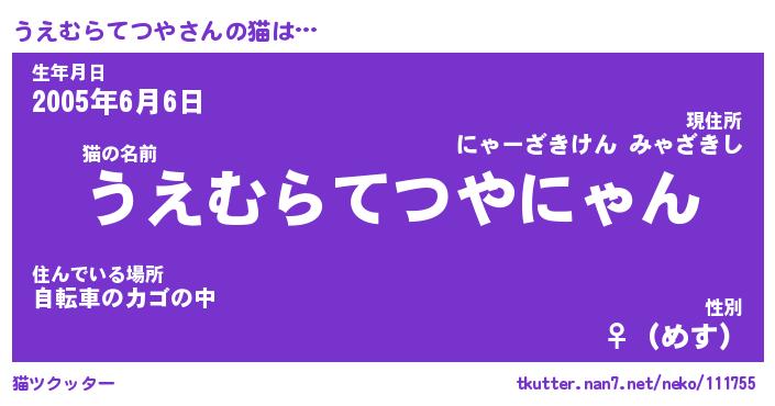 | 男性向けラノベタイトル風あだ名 | 『うえむらてつやの憂鬱』 |