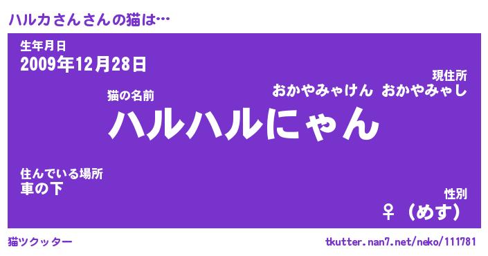 | ファンタジー風あだ名 | 『ハルフェル』『エターナルハルカサンー』 |