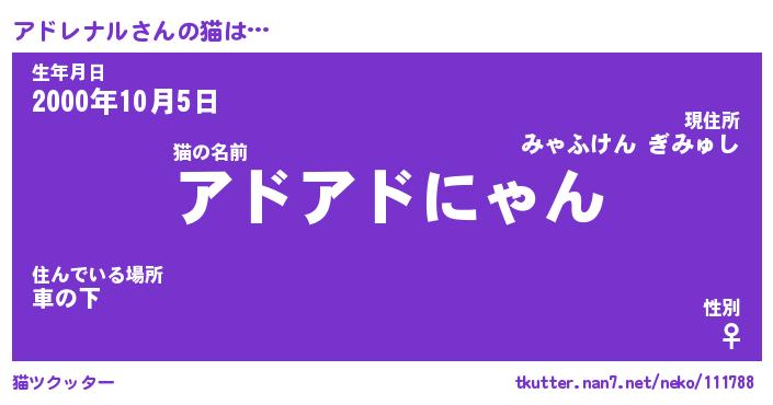 | ファンタジー風あだ名 | 『アドフェル』『エターナルアドレナルー』 |
