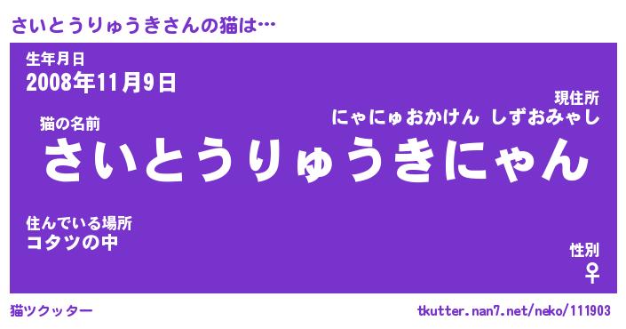 | 男性向けラノベタイトル風あだ名 | 『さいとうりゅうきの憂鬱』 |