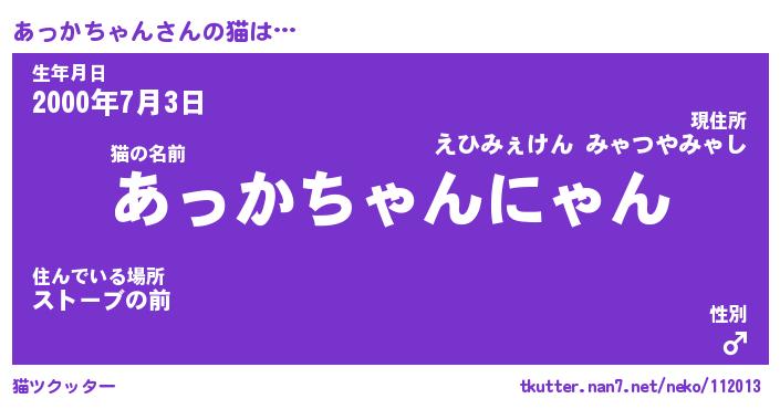 | 生年月日? …「くろねこ」 | 8月01日 10:16 |