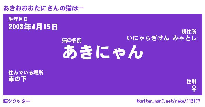 | ヘコむあだ名 | 『あきにー』『豆乳』『あきを』 |