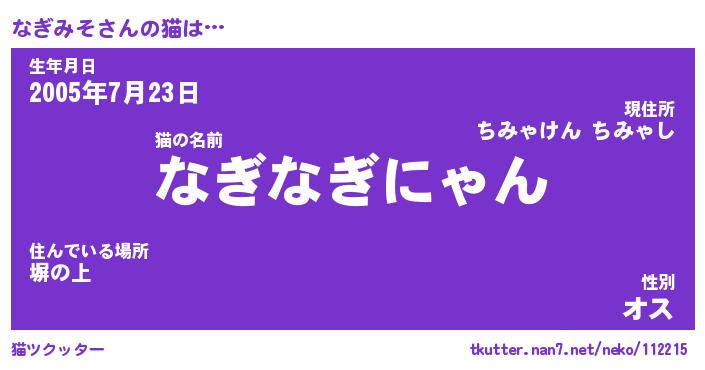 | 2回繰り返すあだ名 | 『なぎなぎ』『ななぎぎ』『ぬめぬめ』 |