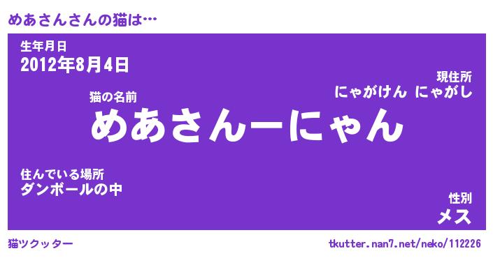 | 意味不明あだ名 | 『ペロリンめあさん』『永久保存めあさん』 |