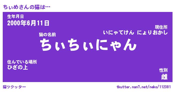 | ファンタジー風あだ名 | 『チィフェル』『エターナルチィメー』 |