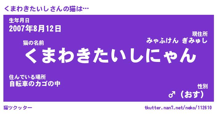 | ヘコむあだ名 | 『くまにゅー』『なまこ酢』『くまを』 |