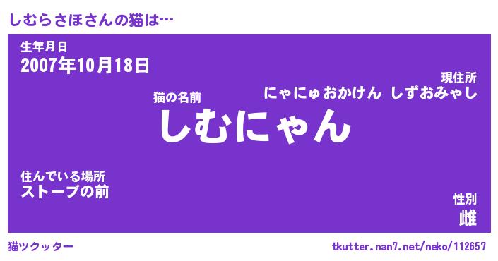 | ヘコむあだ名 | 『しむふぇ~』『なまこ酢』『しむを』 |