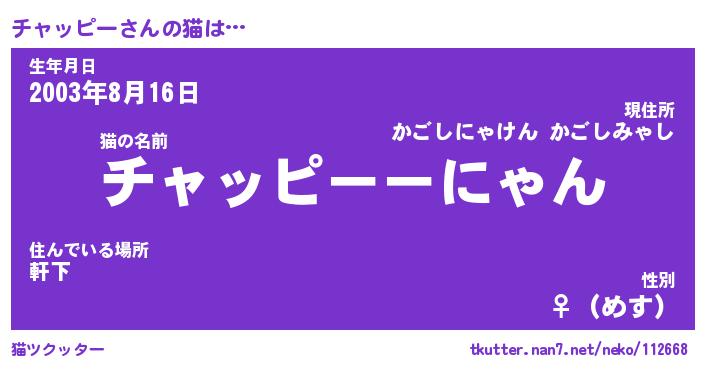| ファンタジー風あだ名 | 『チャフェル』『エターナルチャッピーー』 |