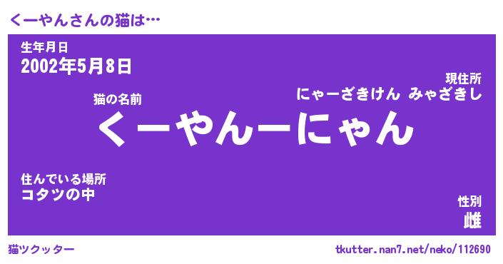 | 意味不明あだ名 | 『ペロリンくーやん』『永久保存くーやん』 |