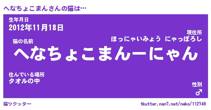 | ツイッター | へなちょこまんさんのツイッターID『fukuyoka_nyan』 |