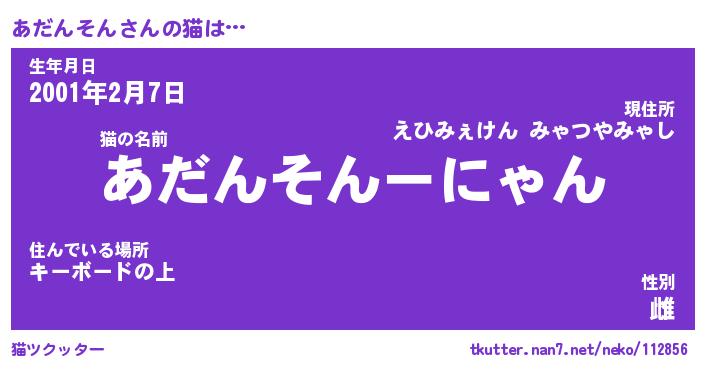 | ヘコむあだ名 | 『あだにー』『つくし』『あだぷりん』 |